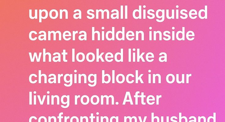 I’m a stay-at-home mom of three, and my days are filled with cooking, cleaning, and caring for everyone. Last month, I found a strange charging block in our living room that didn’t belong to us. Out of curiosity, I examined it closely and discovered a tiny hidden camera inside. My heart raced with confusion and worry about why it was there. I felt a mix of shock and hurt, unsure of what to think.
