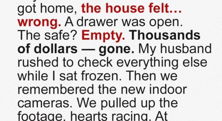 We were only gone for ten days on vacation, but the moment we stepped inside, something felt unsettling. A drawer was left open, items were scattered, and the safe we trusted was completely empty. Thousands of dollars in savings we had built over years were gone. My husband hurried to check the rest of the rooms while I stood frozen in disbelief. That’s when he reminded me about the new indoor cameras we had installed before leaving.
