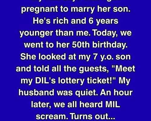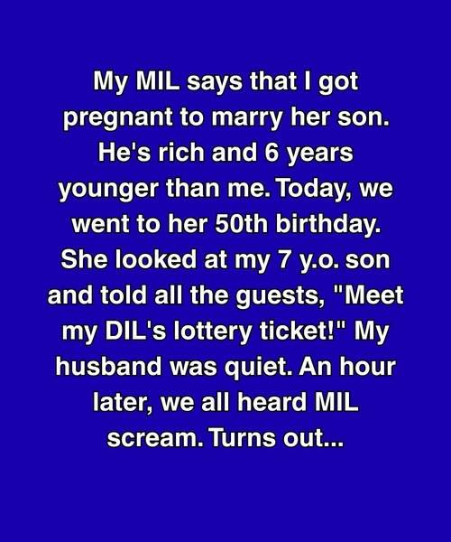 She looked at my 7 y.o. son and told all the guests, ‘Meet my DIL’s lottery ticket!’ My husband was quiet. An hour later, we all heard MIL scream.