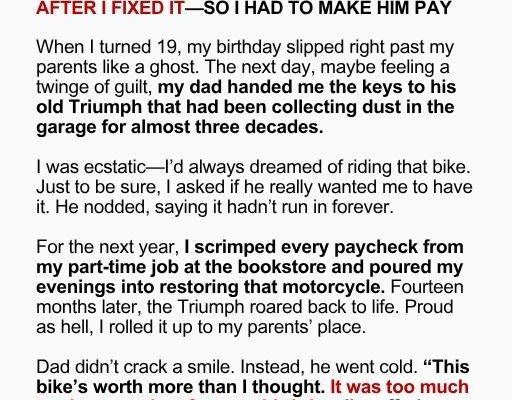 This had been the one thing I built with my own hands—and he tried to take it away the second it became valuable. I kept the bike. But I didn’t keep quiet.