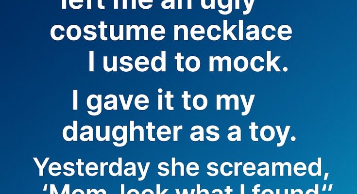 From that moment on, the necklace was no longer just an old trinket. It became a reminder that love and meaning can be hidden beneath what seems ordinary. I now keep it in a special box, not because it’s shiny, but because it carries a lesson that will guide me forever. My daughter still asks to see it, and I tell her, “Grandma knew how to make life magical.” And finally, I understand that some treasures are discovered not with the eyes, but with the heart.