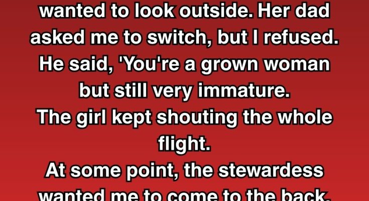 I booked a window seat, but the girl, 7, next to me was crying; she wanted to look outside. Her dad asked me to switch, but I refused. He said, “You’re a grown woman but still very immature.” The girl kept shouting the whole flight. At some point, the stewardess wanted me to come to the back. I froze when she told me…