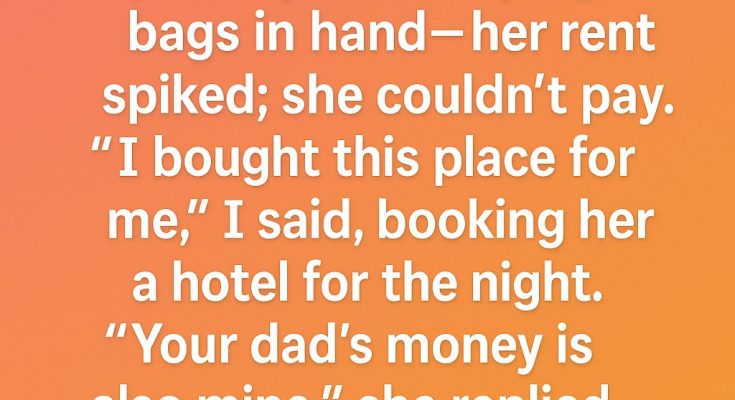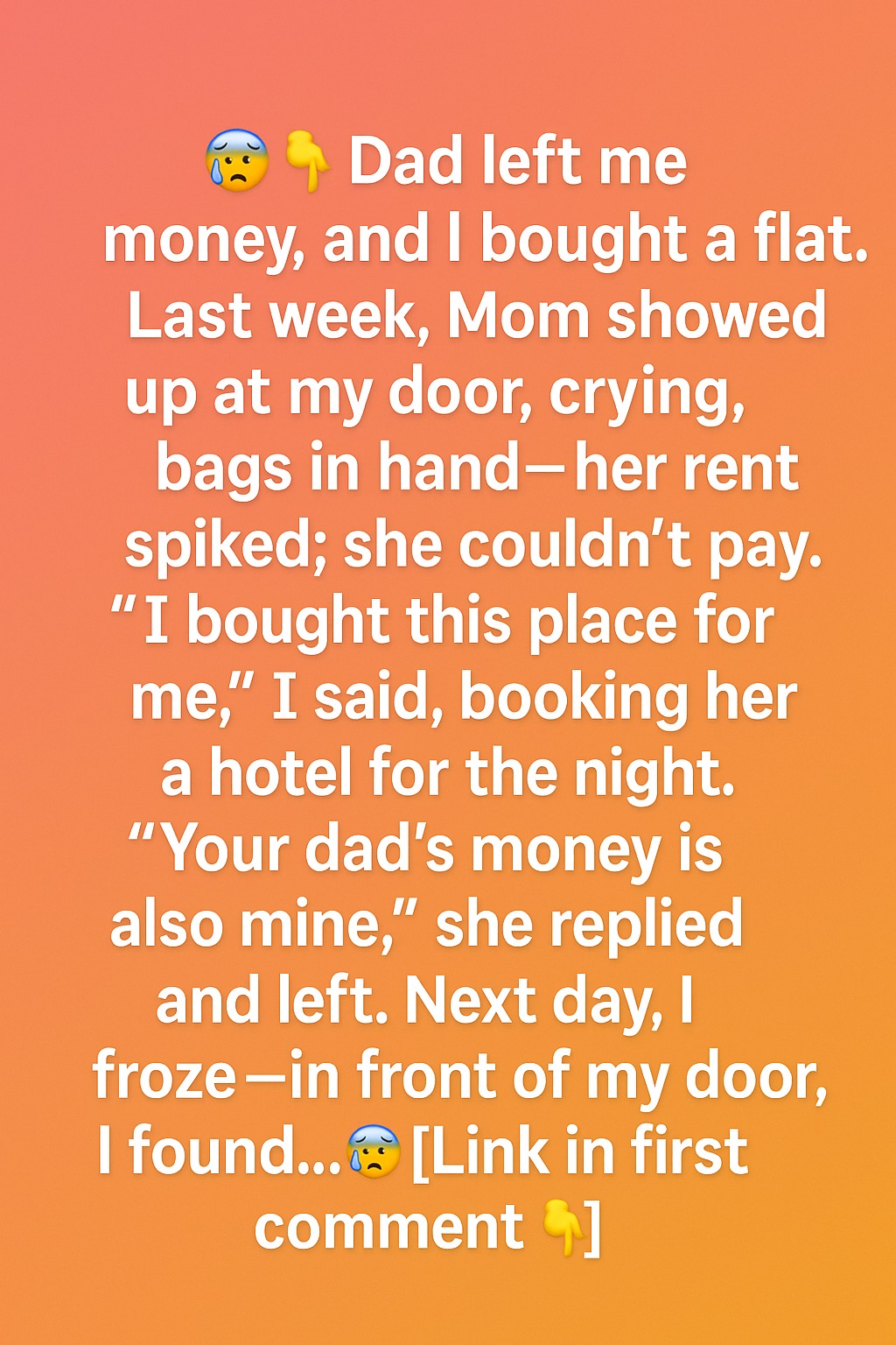 Dad left me money, and I bought a flat. Last week, Mom showed up at my door, crying, bags in hand—her rent spiked; she couldn’t pay. “I bought this place for me,” I said, booking her a hotel for the night. “Your dad’s money is also mine,” she replied and left. Next day, I froze—in front of my door, I found… a small cardboard box with my name written on it in her handwriting.