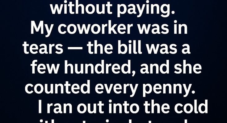 Two men came into our small café, ordered a big meal and drinks, and seemed pleasant enough. But when it was time to pay, they quietly slipped out the door. My coworker, Mia, stared at the bill—several hundred dollars—with tears in her eyes. She was a single mom working two jobs, and every cent mattered to her.