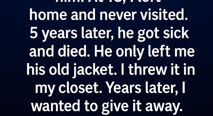 At 18, I left home for college and never looked back. I didn’t call. I didn’t visit. For five years, silence grew between us like a wall. Then, one winter morning, my mom called. Her voice trembled as she told me Mark was very sick. By the time I made it home, he was gone. At the funeral, my mom handed me his old, worn-out jacket. “It’s the only thing he wanted you to have,” she said softly.