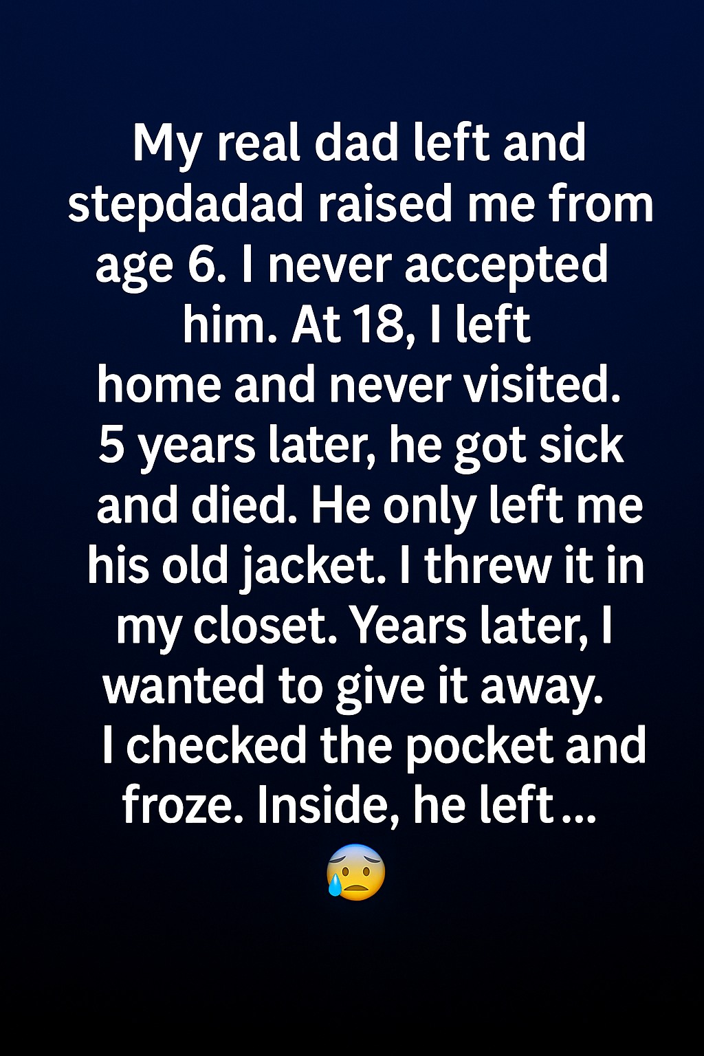 The note read: “Even if you never call me ‘Dad,’ raising you has been the greatest honor of my life. I’m proud of you, and I’ll love you forever. Mark.” Tears blurred my vision. I sank to the floor, clutching the jacket. In that moment, all my anger melted into regret. Mark hadn’t needed my approval to love me he had loved me unconditionally all along. From that day forward, I promised to live in a way that would make him proud. Sometimes, the people who love us the most aren’t the ones who share our blood, but the ones who choose to stay.