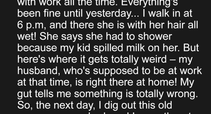 Okay, here’s the backstory, my hubby and I hired a babysitter for our three children as we’re both slammed with work all the time. Everything had been fine until yesterday… I walked in at 6 p.m., and there she was with her hair all wet! She said she had to shower because my kiddo spilled milk on her.