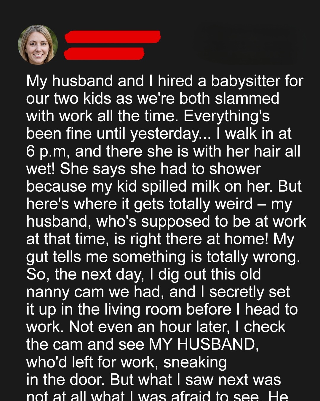 I Caught My Kids’ Babysitter Coming Out of the Shower While My Husband Was Home, So I Turned On the Nanny Cam the Next Day
