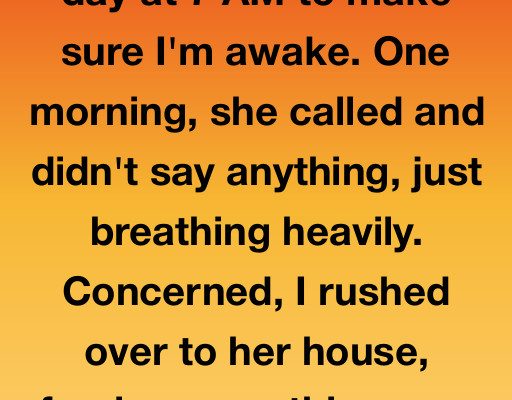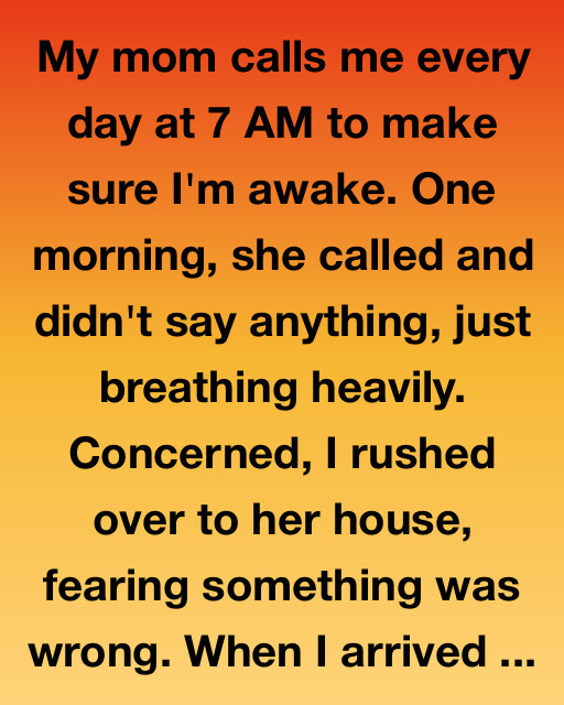 My mom calls me every day at 7 AM to make sure I’m awake. One morning, she called and didn’t say anything, just breathing heavily. Concerned, I rushed over to her house, fearing something was wrong. When I arrived, the door was slightly open, and my heart raced. I called out to her, but there was no answer. The house felt unusually quiet—too quiet for a place that normally welcomed me with the clinking of teacups and the smell of warm toast.
