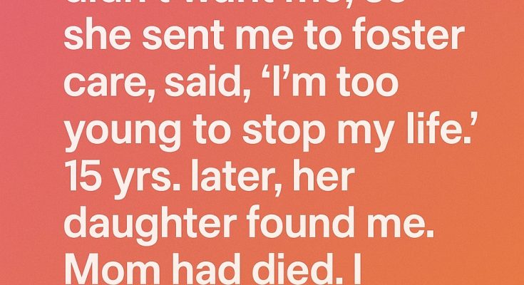My dad passed away when I was eight, and everything changed. My mom remarried soon after, hoping to start fresh. But her new husband wasn’t ready for a child, and suddenly I felt like there wasn’t space for me anymore. She told me she was too young to put her life on hold, and I was sent to foster care. I left with only memories and a quiet hope that one day she might come back for me.