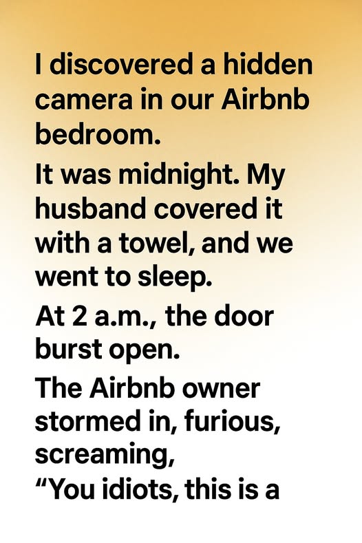 At 2 a.m., the door suddenly burst open. The Airbnb owner stormed in without knocking, his voice raised and upset. “You can’t cover that — it’s part of the house system!” he exclaimed.