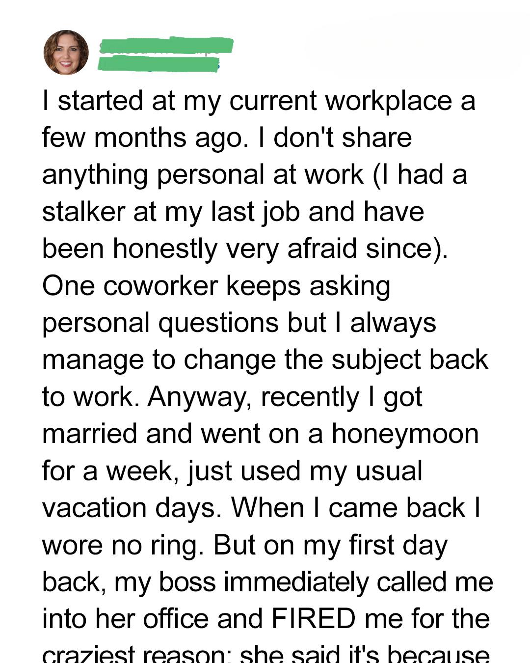 When my husband, George, proposed, I knew I wanted our wedding to be intimate. We invited only our closest friends and family. George suggested inviting my coworkers, but I declined — I wanted to keep my work and private life separate. The wedding was magical, and our Hawaiian honeymoon felt like a dream. But the dream shattered the moment I returned to the office. Whispers followed me as I walked in. Before I could reach my desk, Janet from accounting told me the boss wanted to see me.