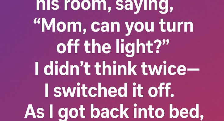 I woke up at 3 a.m., thirsty and groggy. The house was quiet, wrapped in the stillness of the early morning. As I made my way to the kitchen to get a glass of water, I suddenly heard my son’s voice calling from his room.“Mom, can you turn off the light?”The request was so ordinary, so familiar, that I didn’t think twice. I walked down the hallway, reached inside his room, and switched off the lamp without even looking inside.
