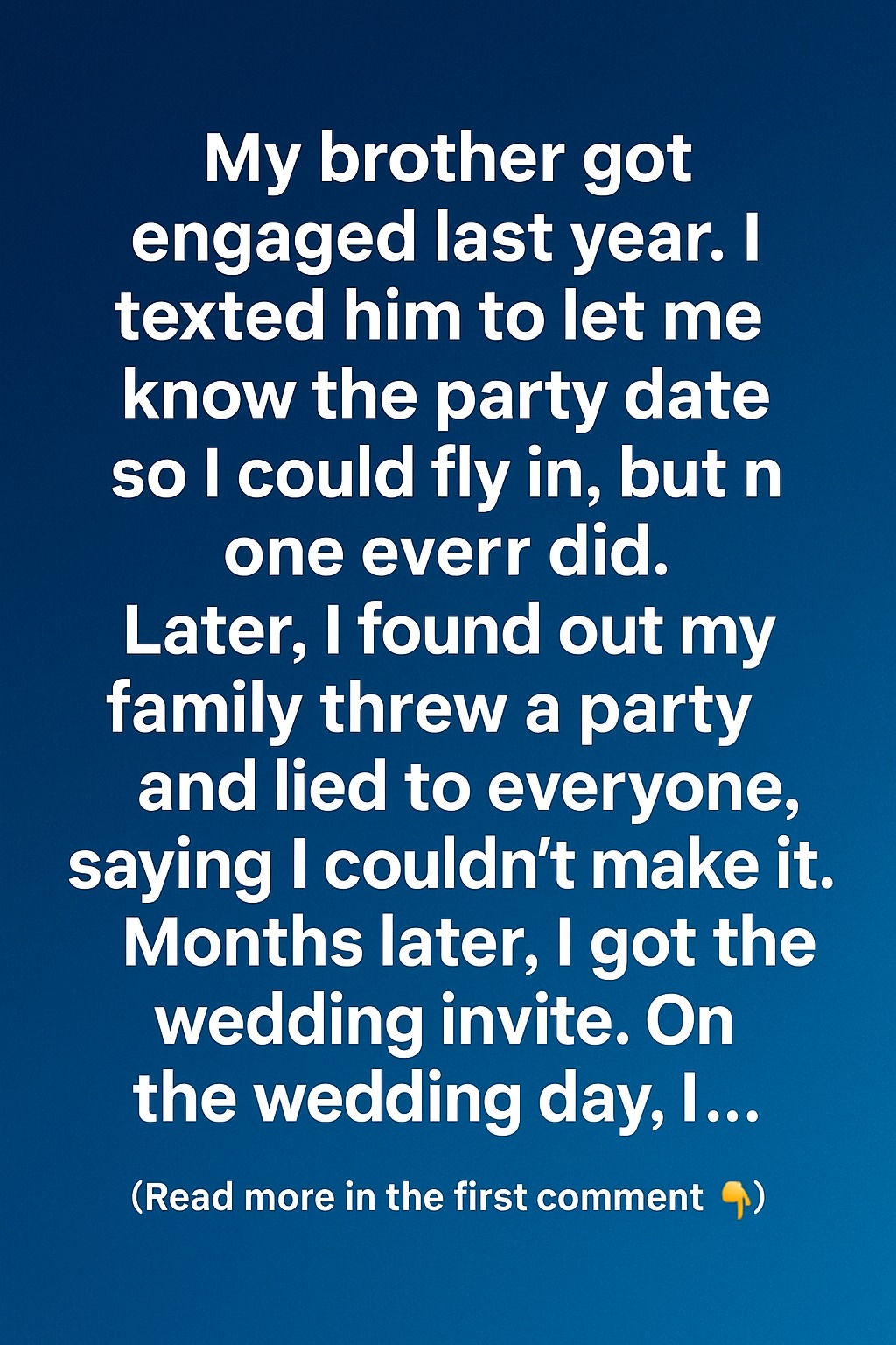After the ceremony, my brother came over and asked why I had missed the engagement celebration. I calmly explained that I never received the date, even though I had reached out. He looked genuinely puzzled and apologized for the confusion. In that moment, I realized how easily small communication gaps can create big misunderstandings. We agreed to stay more connected moving forward.