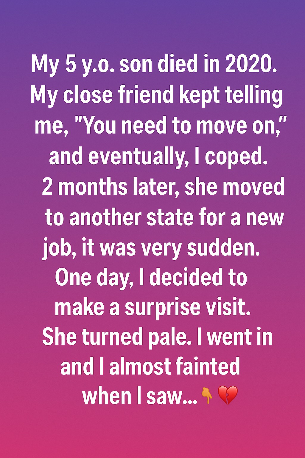 When my 5-year-old son passed away in 2020, my world grew quiet in a way I still struggle to describe. My closest friend tried to comfort me, often saying I needed to move forward, even when my heart wasn’t ready. With time, I learned to cope, even if the sadness never fully left. Two months later, she moved to another state for a new job. It happened so quickly that I barely had time to process it.