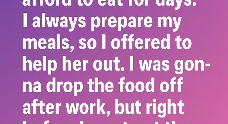 One of my friends said that she was so broke, she wasn’t able to afford to eat for days. I always prepare my meals, so I offered to bring her some after work. I packed everything carefully, hoping it would give her a little relief.