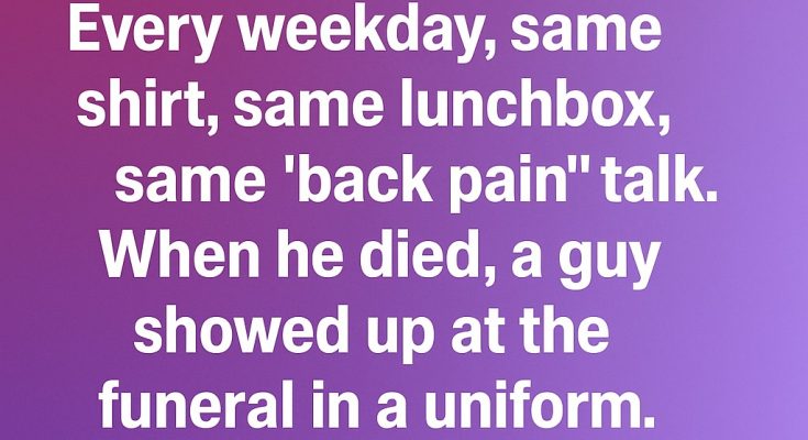 My dad told us he was a mid-level manager at a parts distributor. Every weekday, same shirt, same lunchbox, same “back pain” talk. When he died, a guy showed up at the funeral in a uniform. Turns out, my dad worked… in a completely different role than any of us knew. He wasn’t a manager at all—he was a maintenance worker who kept an entire facility running behind the scenes. The man who came to pay his respects said, “Your dad saved our day more times than I can count. He never wanted credit, but he deserved all of it.”