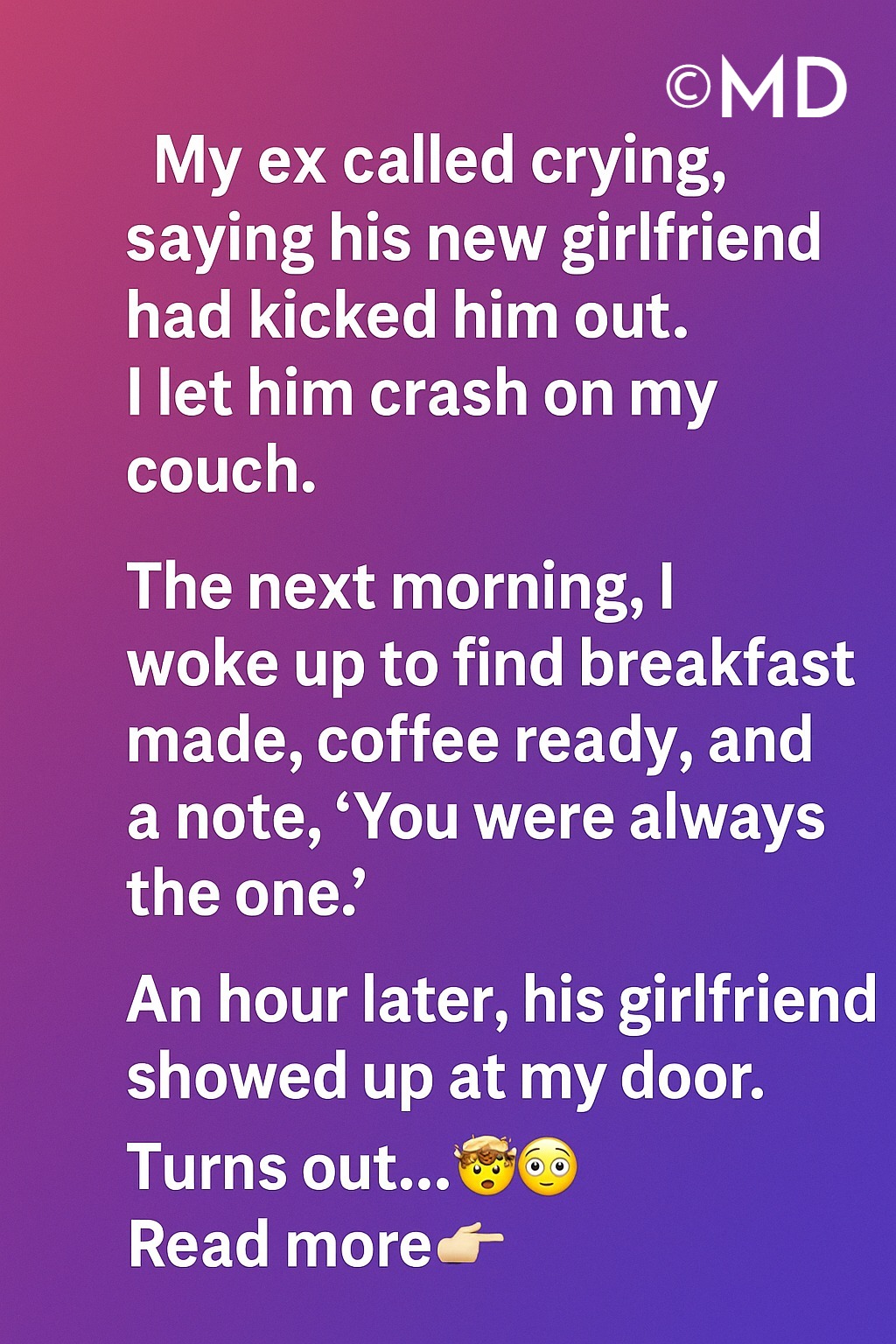 My ex called crying, saying his new girlfriend had kicked him out. I let him crash on my couch. I didn’t expect anything dramatic to happen; I simply felt it was kind to offer someone I once cared about a place to stay. He fell asleep almost immediately, exhausted and overwhelmed, while I returned to my own quiet evening.