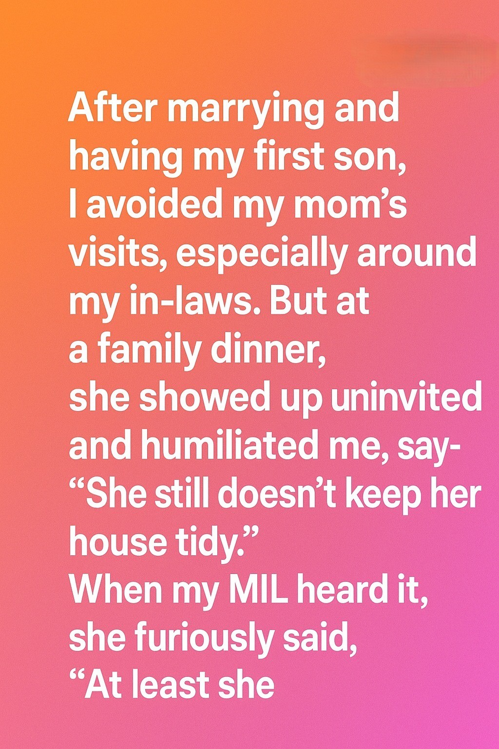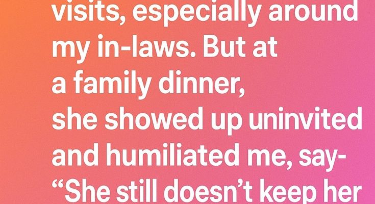 After marrying and having my first son, I avoided my mom’s visits, especially around my in-laws. But at a family dinner, she showed up uninvited and humiliated me, saying—”She still doesn’t keep her house tidy.”