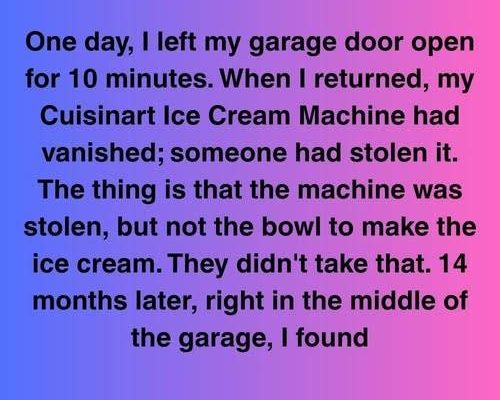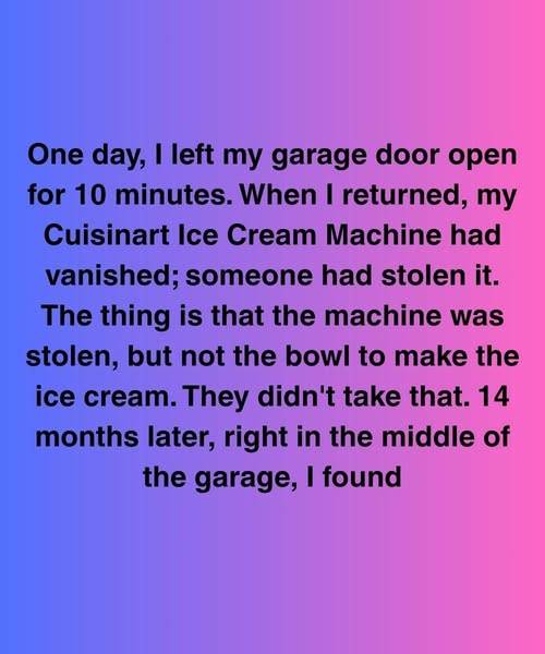 One day, I left my garage door open for 10 minutes. When I returned, my Cuisinart Ice Cream Machine had vanished; someone had stolen it. The thing is that the machine was stolen, but not the bowl to make the ice cream.