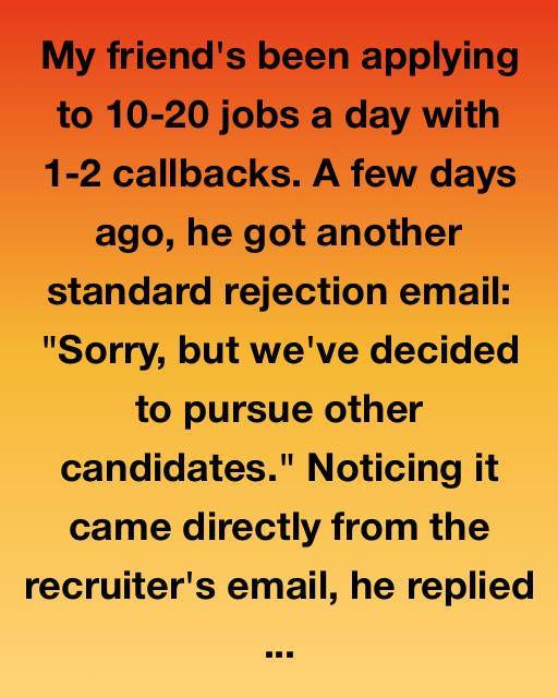 My friend’s been applying to 10-20 jobs a day with 1-2 callbacks. A few days ago, he got another standard rejection email: “Sorry, but we’ve decided to pursue other candidates.” Noticing it came directly from the recruiter’s email, he replied. He didn’t expect anything from it.