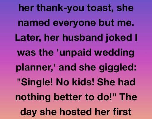 I handled the weird aunt who only eats white food and the cousin with the gluten-free, sugar-free, nut-free diet. I even canceled a trip I’d planned for months, just to be there for her bridal meltdown weekend. So yeah, it hurt when I was the only person she didn’t thank.