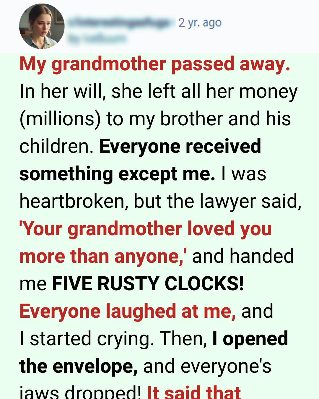 They Laughed When My Grandmother Left Me Five Rusty Clocks—Until I Opened the Envelope… #4