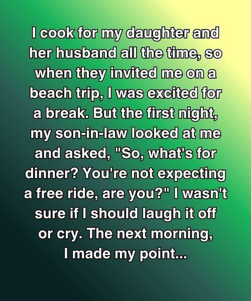 I didn’t say anything then. Just swallowed the bitter taste. But that comment… it festered. It burrowed deep. It joined all the other subtle dismissals, the unspoken expectations, the way my efforts were simply absorbed into the background noise of their lives, never acknowledged, always expected. Like I was a fixture, not a person.
