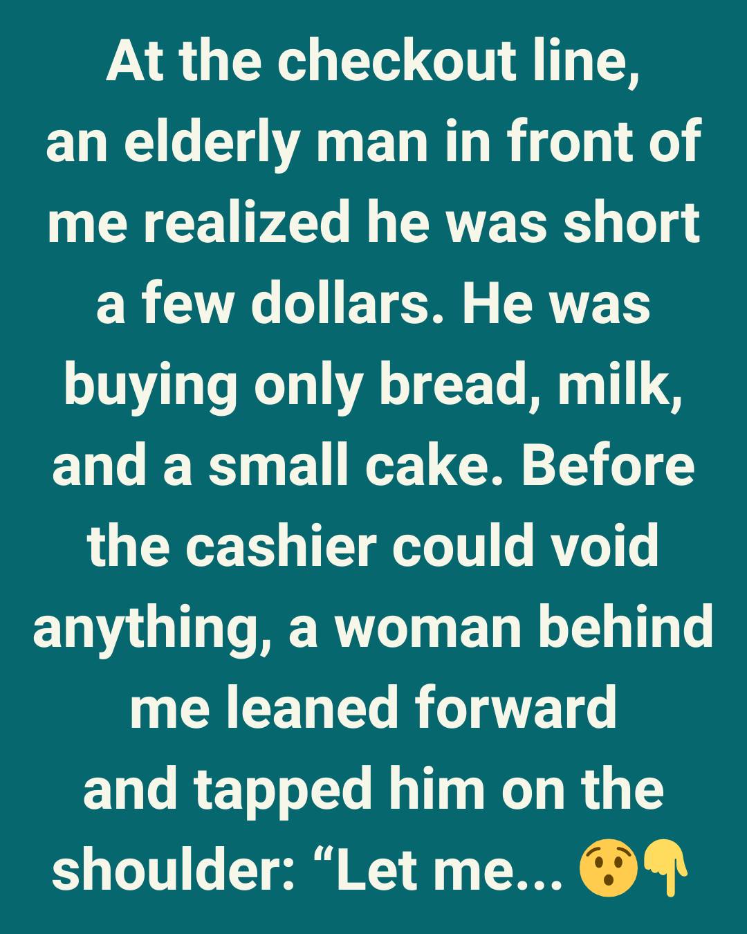 At the checkout line of the grocery store, things were moving slowly, the kind of quiet lull that makes you notice the little human moments around you. An elderly man stood in front of me, holding just a few items—bread, a carton of milk, and a small frosted cake with pink edging. When the cashier announced the total, he patted his pockets, checked his wallet twice, and finally sighed.