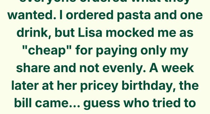 Before anyone could even answer, Lisa rolled her eyes so hard I thought they’d get stuck. “Ugh, you’re always so cheap,” she snapped.
