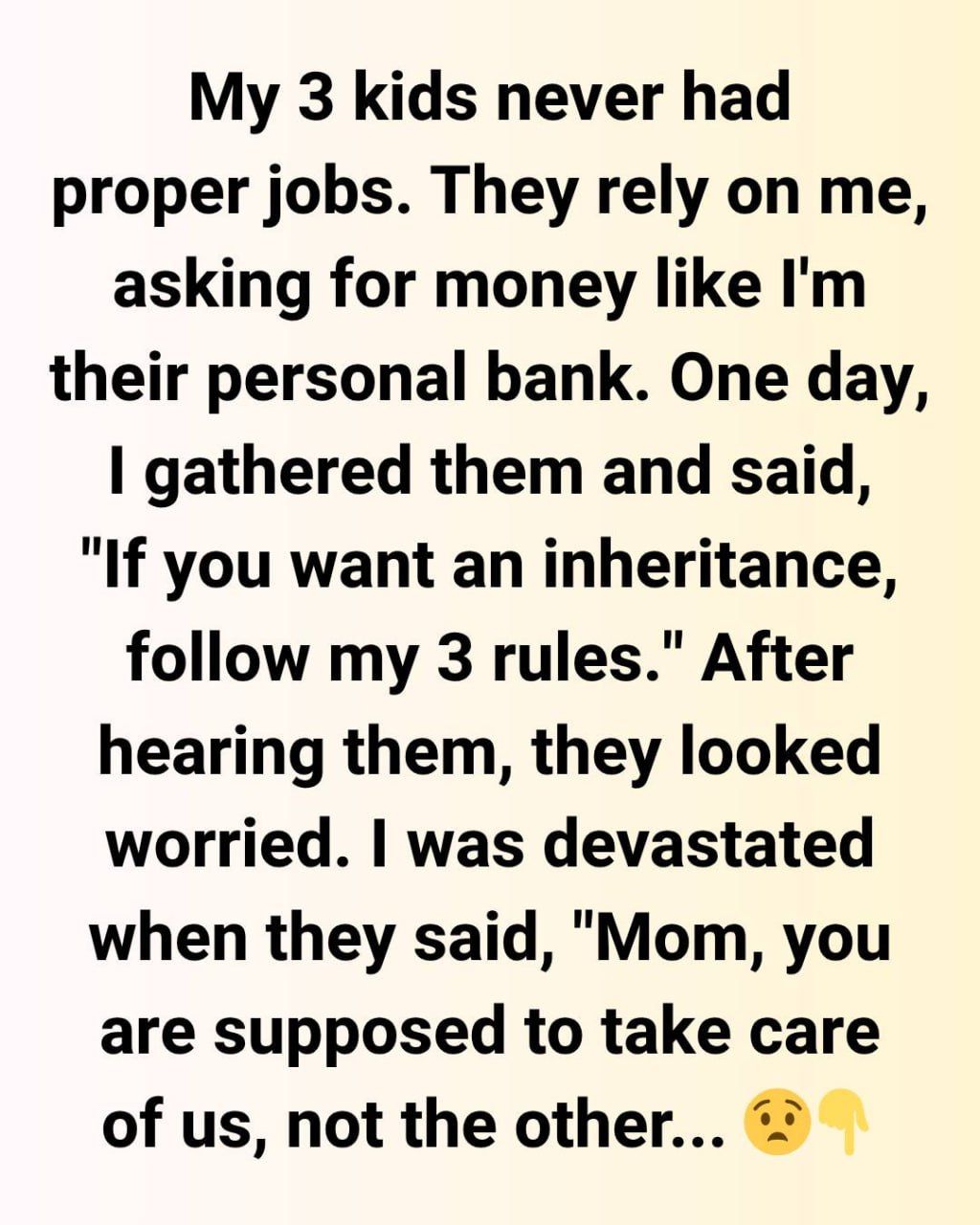 I know what you’re thinking. And frankly, I don’t care. My kids? They won’t see a single penny of my inheritance until they follow my three rules. Call me cruel. Call me controlling. But you didn’t walk in my shoes. You didn’t live my nightmare.