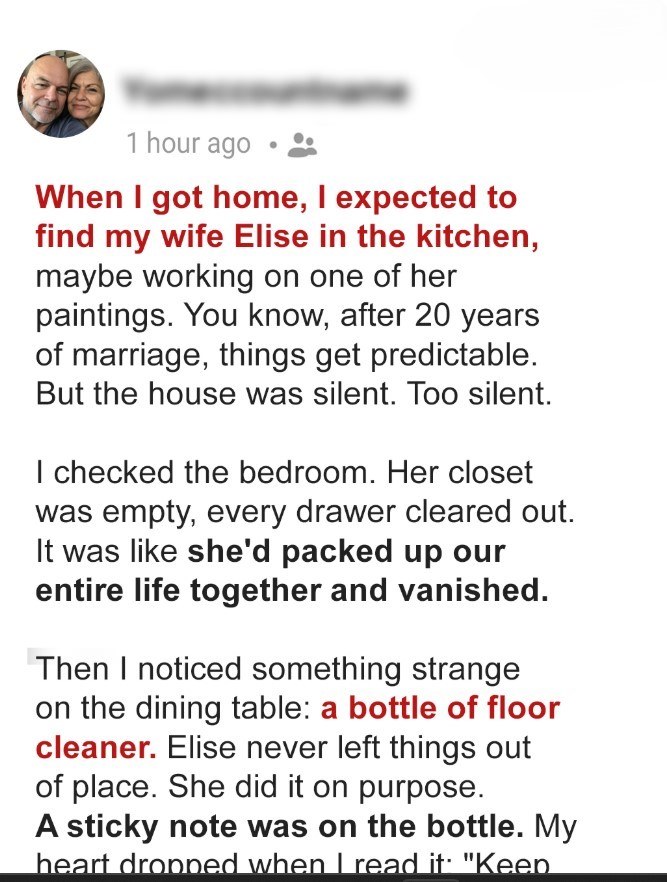 My Wife Ended Our 20-Year Marriage in a Single Night — All She Left Behind Was a Bottle of Floor Cleaner and a Note #4