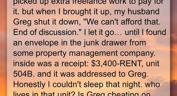 One Saturday during spring cleaning, I discovered an envelope tucked into our junk drawer—a neatly folded receipt from a luxury apartment building downtown. It showed a monthly payment of $3,400 for a unit I had never heard Greg mention. Confused and unsettled, I followed my instincts and visited the building myself. Nothing prepared me for the moment his mother, Meryl, opened the door of that beautiful apartment, wearing silk pajamas and greeting me casually, as if this arrangement were perfectly normal. She explained that Greg had arranged everything so she could live comfortably, dismissing any concern about the impact this had on our family budget. When I asked how she could feel comfortable with this while Emily went without preschool, she simply shrugged—a gesture that told me everything about her expectations and Greg’s choices.