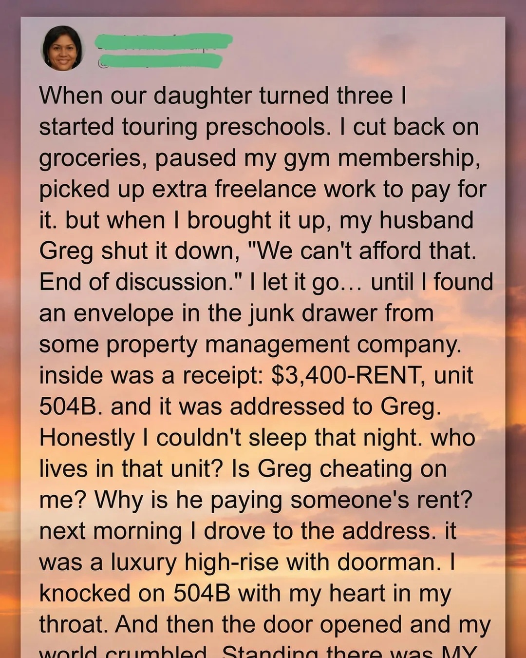 When my husband Greg insisted we couldn’t afford preschool for our daughter Emily, I believed him without hesitation. I adjusted our budget, took on extra freelance work, and convinced myself that waiting another year wouldn’t hurt. Emily was a bright, curious child who craved interaction and structure, and I dreamed of giving her the kind of early education that would help her grow. Even so, Greg’s firm refusal made me pack away all the brochures I had collected, telling myself this sacrifice was temporary. But the uneasiness stayed with me, especially as Greg began working later, guarding his phone more closely, and brushing off my questions with tired smiles. I tried to trust him, tried to quiet the feeling that something wasn’t adding up.