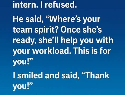 When my boss asked me to work an extra hour every day, unpaid, to train the new intern, I paused. I already stayed late, handled extra tasks, and had never asked for anything in return. I politely declined, explaining that my time outside work was important to me.