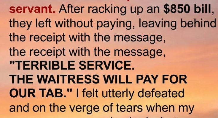 What began as an ordinary Friday night at the restaurant quickly turned into one of the most challenging shifts of my life. I was already busy when a family arrived with a long list of special demands — a window table, extra comfort, brighter lighting, and constant adjustments. Their comments grew more critical as the evening went on, from complaints about the menu to remarks about ordinary details such as the room’s lighting and the texture of the bread. I did everything I could to stay professional, even as they snapped for attention and sent dishes back for reasons that felt more personal than practical. By the time their desserts were cleared, I finally allowed myself a moment to breathe, certain the worst was over. But when I returned with their bill, the table was empty. All that remained was a note criticizing the service and implying that I was responsible for their unpaid $850 tab.