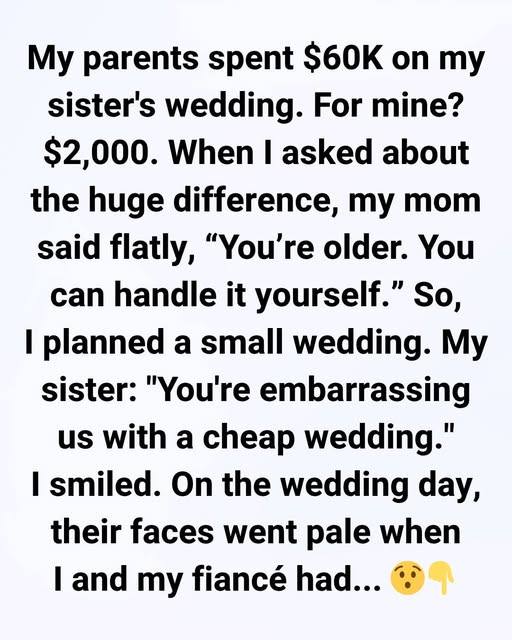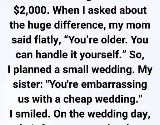 When I asked about the huge difference, my mom said flatly, “You’re older. You can handle it yourself.” So, I planned a small wedding. My sister: “You’re embarrassing us with a cheap wedding.” I smiled.