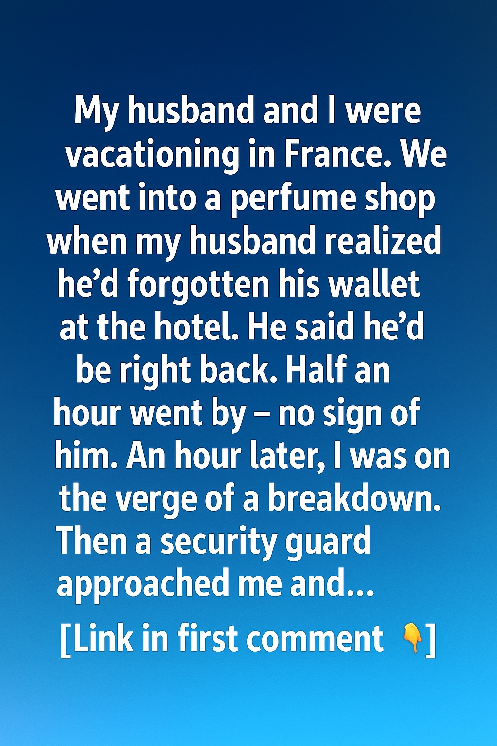 My husband and I were vacationing in France. We went into a perfume shop when my husband realized he’d forgotten his wallet at the hotel. He said he’d be right back. Half an hour went by – no sign of him. An hour later, I was on the verge of a breakdown. Then a security guard approached me and…