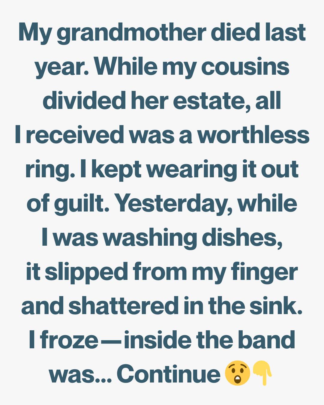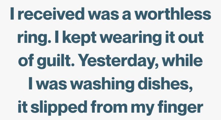 I wondered if she had expected me to want more—if I should have fought for some part of her legacy. Yesterday, while washing dishes after dinner, my hands were slick with soap when the ring suddenly slid off. I heard it hit the stainless-steel sink with a sharp clink, followed by a sound that made me gasp—a small crack, almost like glass breaking.