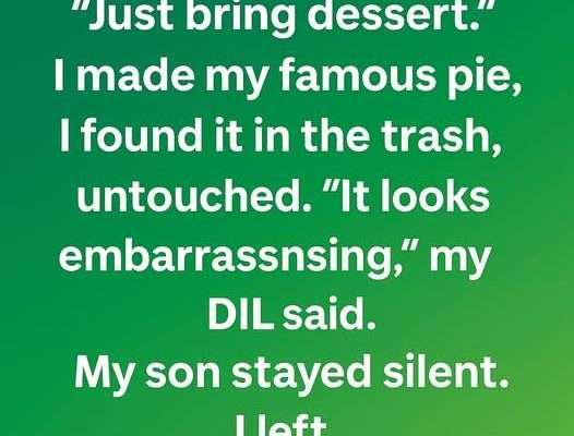 My daughter-in-law hosted a beautiful family dinner, warm lights and soft music filling the room. She told me kindly, “Just bring dessert,” so I prepared my favorite pie, the one everyone used to ask for. When I arrived, I placed it proudly on the counter, excited to share.