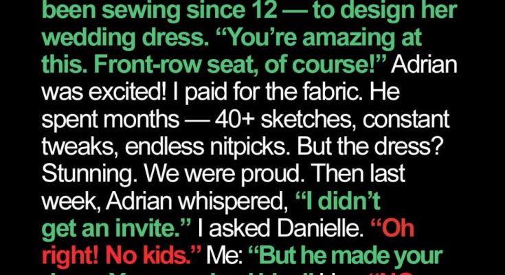 He held up his phone, barely looking at me. His eyes went hollow, like something in him shut off. “I never got an invitation to Aunt Danielle’s wedding. I’m so hurt. I made her dress… and she doesn’t even want me there.”