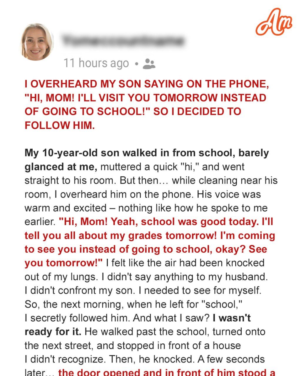 My heart thundered in my chest as questions swirled through my mind. Was he speaking to my mother? No, she lived in Florida, and Liam always called her “Grandma.” A school counselor, maybe? A friend’s mother?