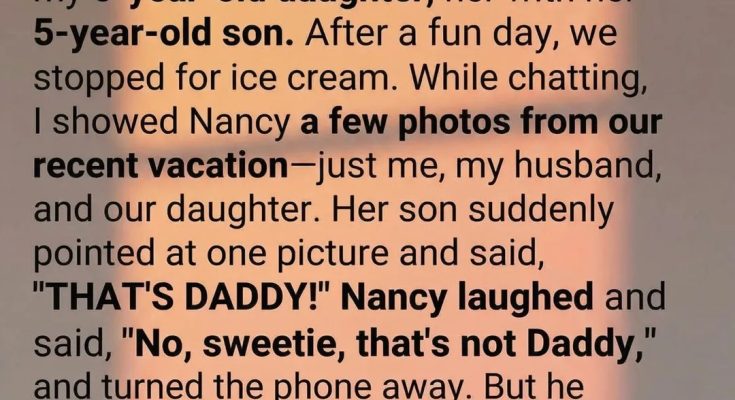 My best friend Nancy and I took our kids to the amusement park—me with my 6-year-old daughter, her with her 5-year-old son. After a fun day, we stopped for ice cream. While chatting, I showed Nancy a few photos from our recent vacation—just me, my husband, and our daughter. Her son suddenly pointed at one picture and said, “THAT’S DADDY!” Nancy laughed and said, “No, sweetie, that’s not Daddy,” and turned the phone away. But he insisted, “It is! He came last week and brought me a teddy bear.” She laughed again, but I felt uneasy. I pulled up a photo of my husband alone and showed it to him—despite her protests. He looked straight at it and said, “That’s him. He told me not to tell.”