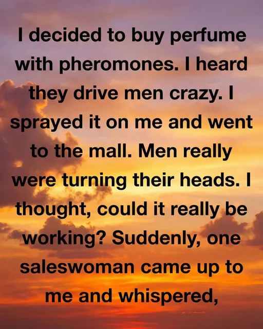 saleswoman came up to me and whispered, “You must tell me where you got that scent—it’s incredible!” Her voice wasn’t flirtatious or mischievous; it was the excited curiosity of someone who genuinely appreciated fragrances. For a moment, I blinked in surprise, expecting some dramatic revelation about the supposed power of pheromones. But instead, she smiled warmly and said she collected perfumes as a hobby. The unexpectedly wholesome conversation made me laugh at how seriously I had taken the myths behind the perfume. Still, the attention it drew from people around me—men and women—was undeniable. Maybe, I thought, it wasn’t magic at all but simply something in the fragrance that brought out a confidence I didn’t realize I had.
