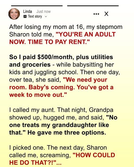 Emily couldn’t believe it when she turned 18 and her stepmom told her she had to start paying rent. But the real shock came later—when they told her to move out. With nowhere else to turn, Emily called the one person who had never let her down: Grandpa.