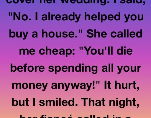 My daughter asked me to pay for her extravagant wedding. I said no—I had already given her money to buy a house. She called me cheap and said, “You’ll die before spending all your money anyway!” It stung, but I let it go.