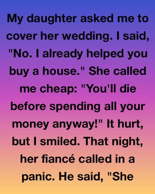 My daughter asked me to pay for her extravagant wedding. I said no—I had already given her money to buy a house. She called me cheap and said, “You’ll die before spending all your money anyway!” It stung, but I let it go.