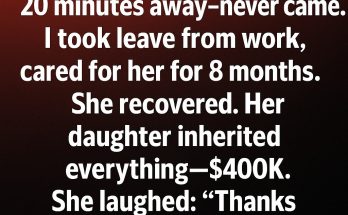 Almost a year passed before she walked into my hardware store. She looked different—tired, humbled, grown. She told me she had a job, paid her own rent, and understood now that she had been drowning while expecting me to be the boat.