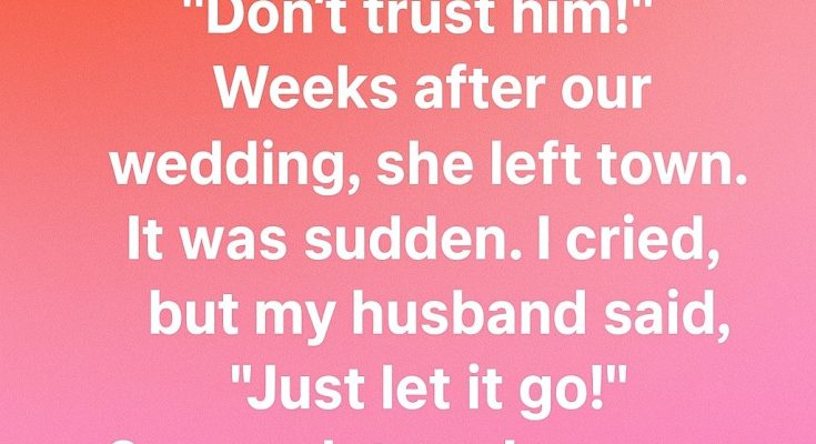 Still, her words lingered in the back of my mind. Then, only weeks after our wedding, she suddenly left town without explanation. I was heartbroken and confused; losing a best friend felt like losing a part of myself.