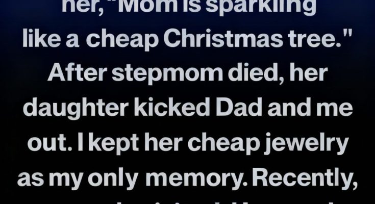After my stepmom died, the house emptied faster than grief could settle. Her daughter pushed my dad and me out with sharp words and locked doors, as if love could be evicted. I was young and had no power to argue, so I took only what fit in my bag. Tucked between sweaters was a small box of jewelry—plastic bangles, tarnished chains, and a brooch missing a stone. It wasn’t worth money, but it was worth memory. Each piece held her warmth: the clink of bracelets while cooking, the sparkle she wore to the grocery store, the quiet joy of choosing herself despite judgment. Those pieces became my anchor when everything else felt taken.